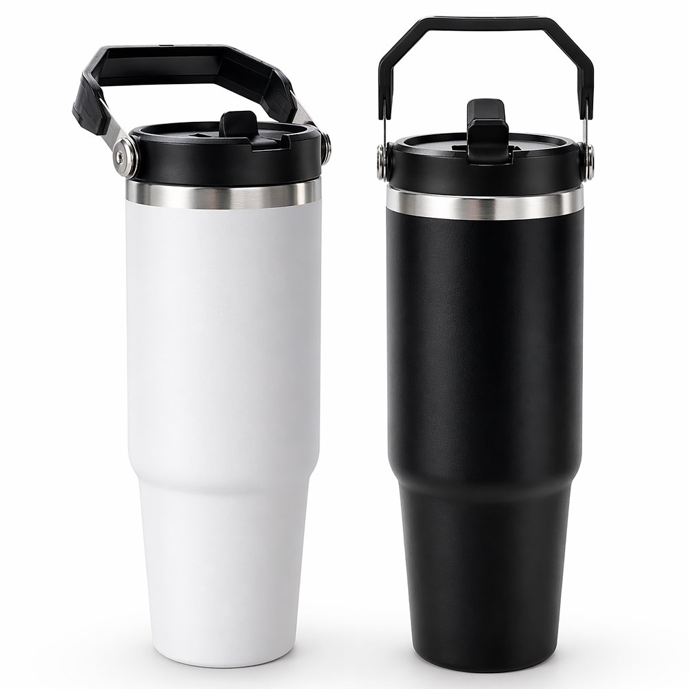 Acero inoxidable de doble capa térmica que conserva calor entre 8-10 horas. Tapa de seguridad con manija y pitillo. De 900 ml.
