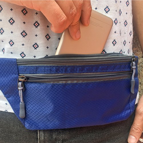 Elaborado en lona impermeable con 3 bolsillos y correa ajustable en reata. De 32 x 10 cm.
