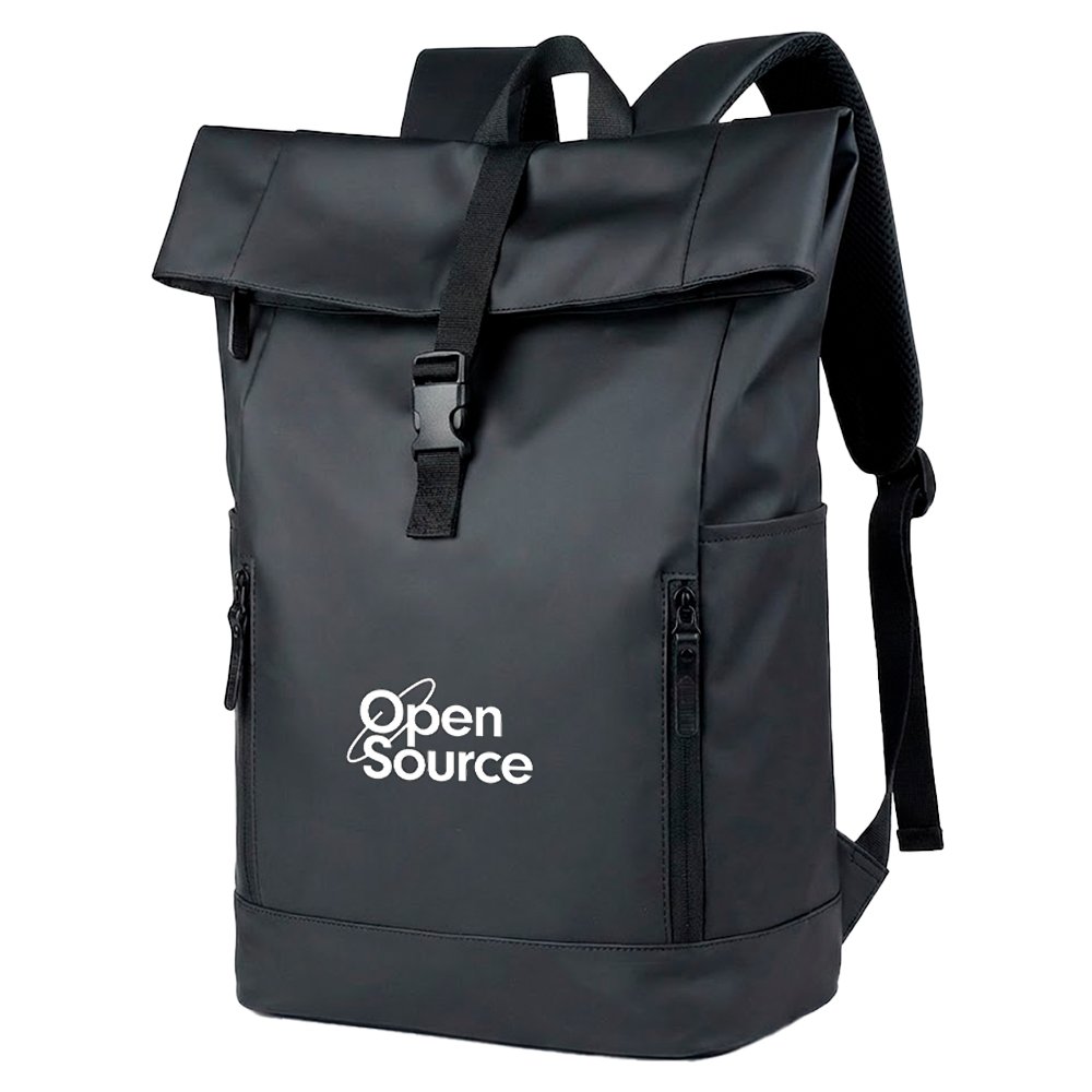 Maleta roll top con bolsillo expandile para portatil, doble bolsillo lateral con cremalera y doble bolsillo tipo sobre para bebidas. Capadicad 35 litros / 8 kilos. Tirantas acolchadas. Material PU impermeable. De 42 x 32 x 17 cm (enrollada)