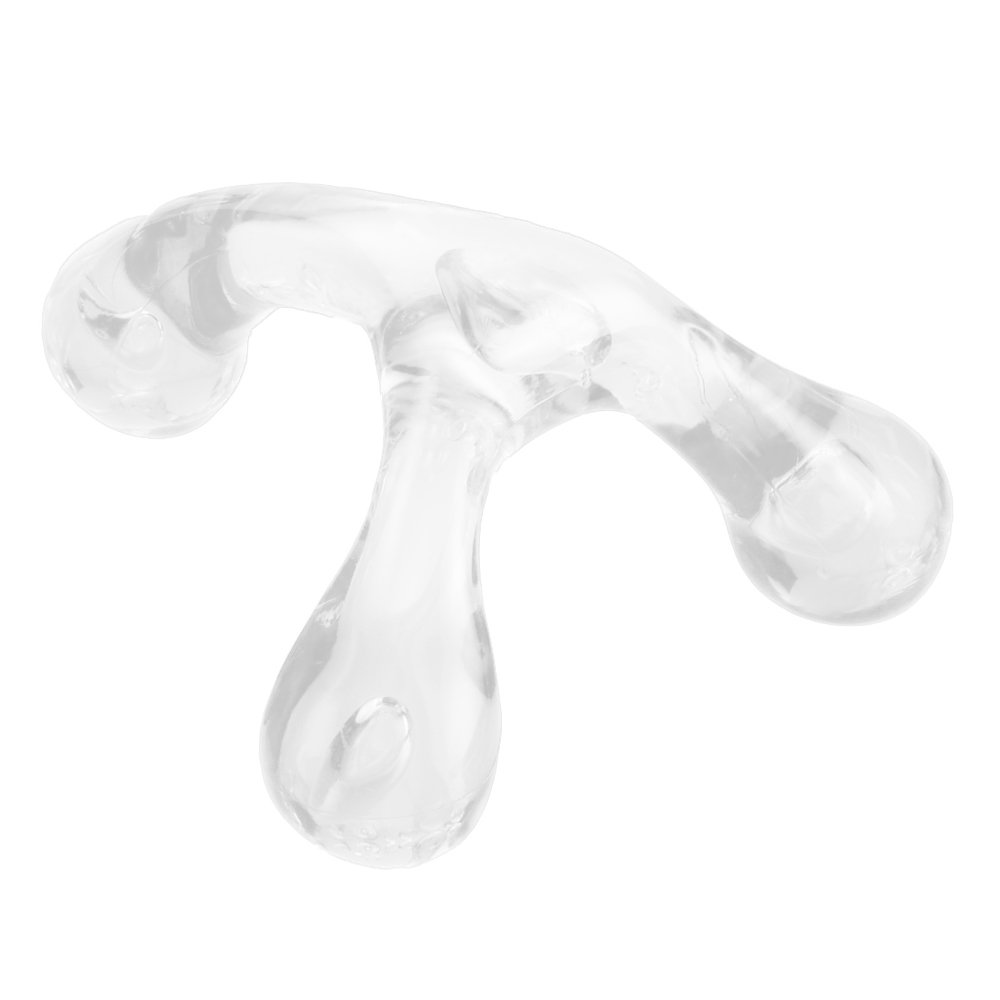 Masajeador plástico traslucido con 3 puntas. De 9 x 8.5 cm.
